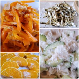 ☆人参ツナ炒め☆里芋サラダ☆小魚☆みかん