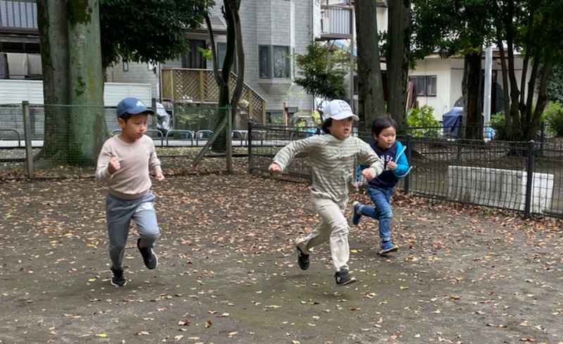 今日は公園に出かけ広い場所でよーいどん!の練習をしました☆