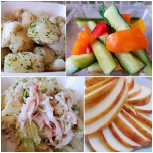 ☆のり塩ポテト☆パプリカと胡瓜のピクルス☆キャベツの胡麻マヨサラダ☆りんご