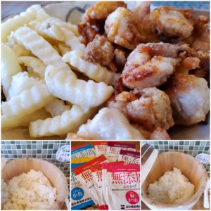 ☆鶏の塩唐揚げ☆ポテトフライ☆玄米入りご飯/白米☆ふりかけ