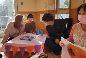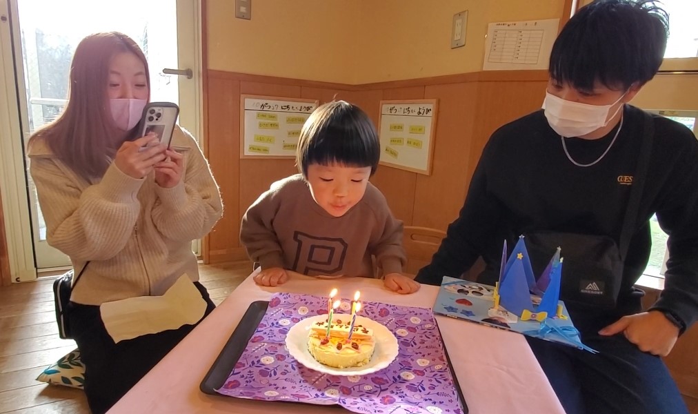 今日は10月生れのお友達のお誕生日会を開きました☆初めは少し照れくさそうな様子でしたが、パパママと一緒に楽しんでいました♪大好きなレーズンが乗ったケーキでお祝いしました🎂
