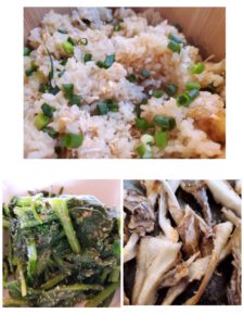 ☆秋鮭の炊き込みご飯☆ほうれん草胡麻和え☆カリカリ舞茸焼き