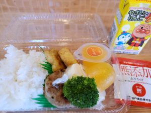 ☆ご飯/軟飯☆ふりかけ☆ハンバーグ☆アンパンマンポテト☆ブロッコリー☆チーズ☆プチゼリー☆野菜ジュース