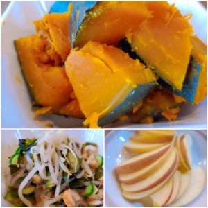 ☆南瓜の煮物☆もやしとわかめの酢の物☆りんご
