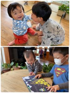 大きい子達が提案してくれた秋の神経衰弱や新しい絵本を出したりして好きな遊びを楽しみました♪