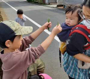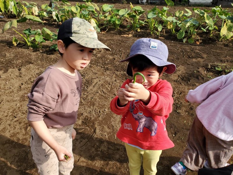 小さい子たちにとったいんげんを見せていました♪