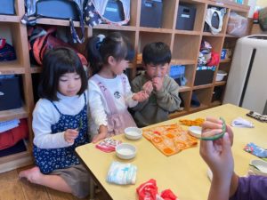「いんげん苦手なんだよ~」と言いながらもやっぱり自分たちで一生懸命に育てたいんげんを”食べてみよう”としたりしてました♪