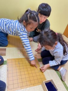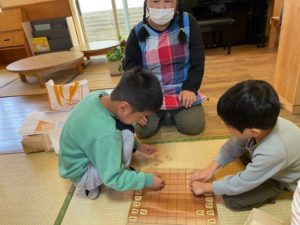 久しぶりだったので駒の並べ方が直ぐに思い出せず、〝う~ん…〟と固まってしまう子ども達でしたが、一人が「最初は王だ!」と思い出すと徐々に勘を取り戻した様子で動き始めていました。
