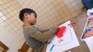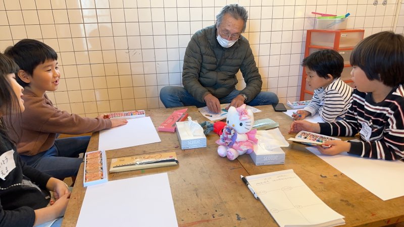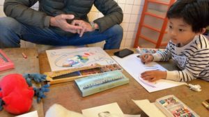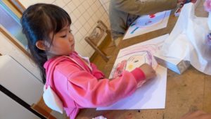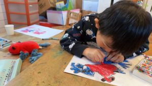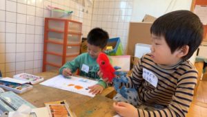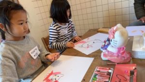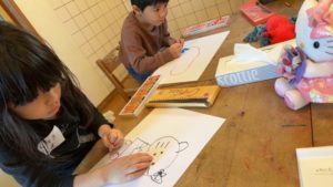 面白い事に男の子はカエルやトカゲを選び、女の子はキティちゃんを選んで描いていました。