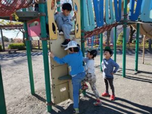 まだまだ元気いっぱいな子ども達は遊具で遊んだり・・・どろけいをしたり・・・リレーごっこをしたり・・・思いっ切り身体を動かして楽しんでいました♪