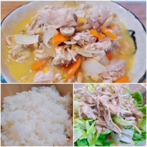 ☆鶏肉のオレンジ煮☆白米☆きのことレタスのサラダ