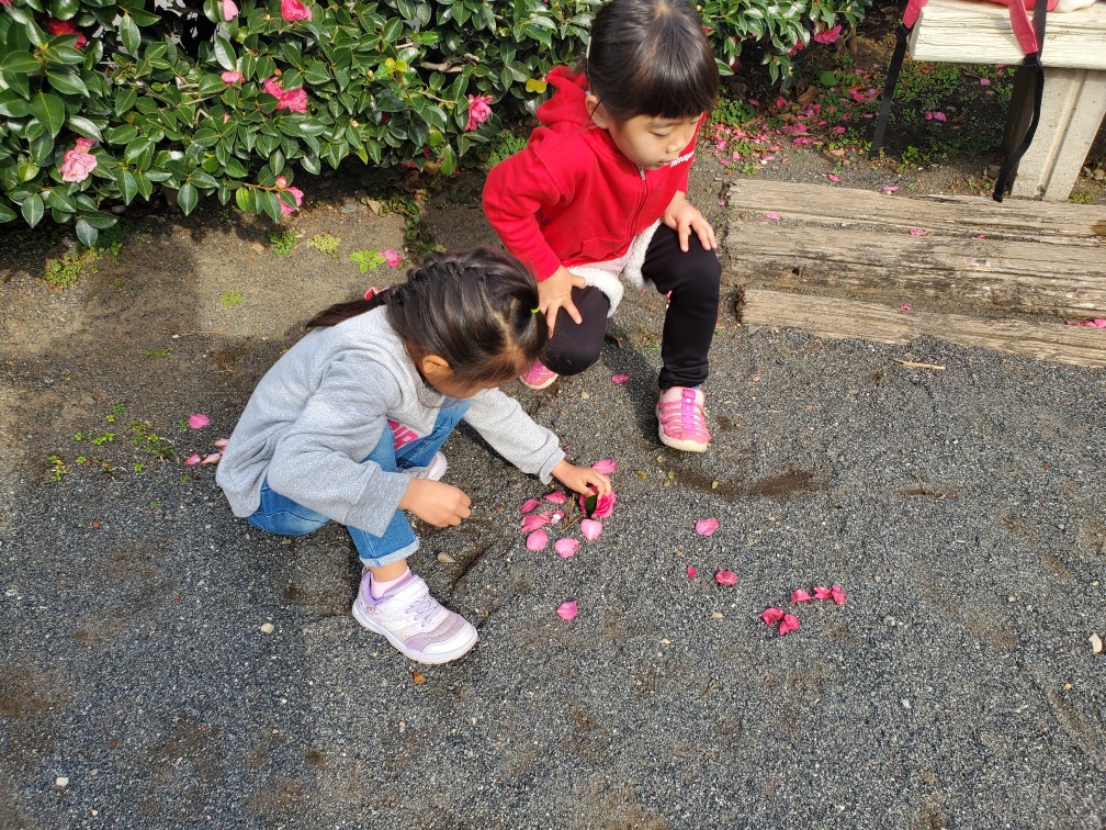 女の子達は山茶花の花びらを集めて楽しんでいましたよ😊