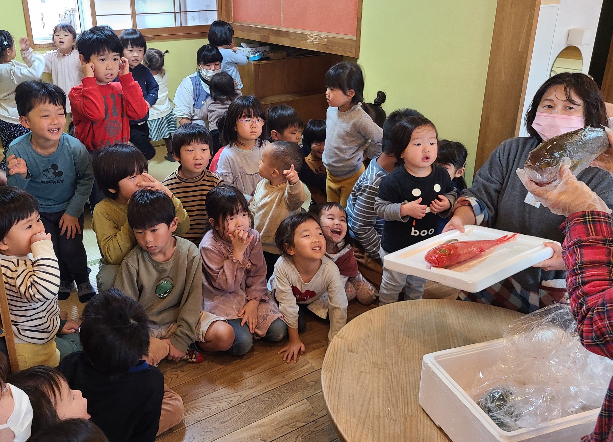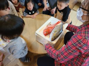 「わぁ~おっきい~!」「まぐろー??」と驚く子ども達です >゜)))彡