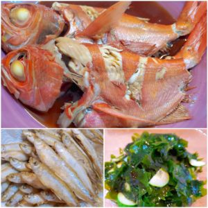 ☆金目鯛の煮付け☆ワカサギの唐揚げ☆生わかめのサラダ