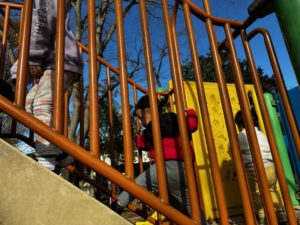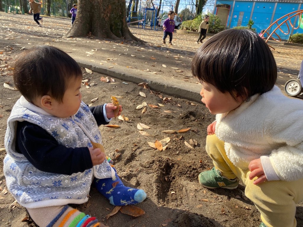 すべり台公園では寒さを吹き飛ばすぐらいの元気で遊びまわる子どもたちでした♪