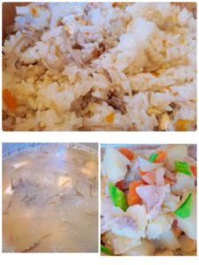 ☆きのこたっぷり炊き込みご飯☆もずくの味噌汁☆塩肉じゃが