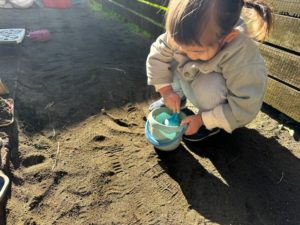 【集中して砂を入れています】