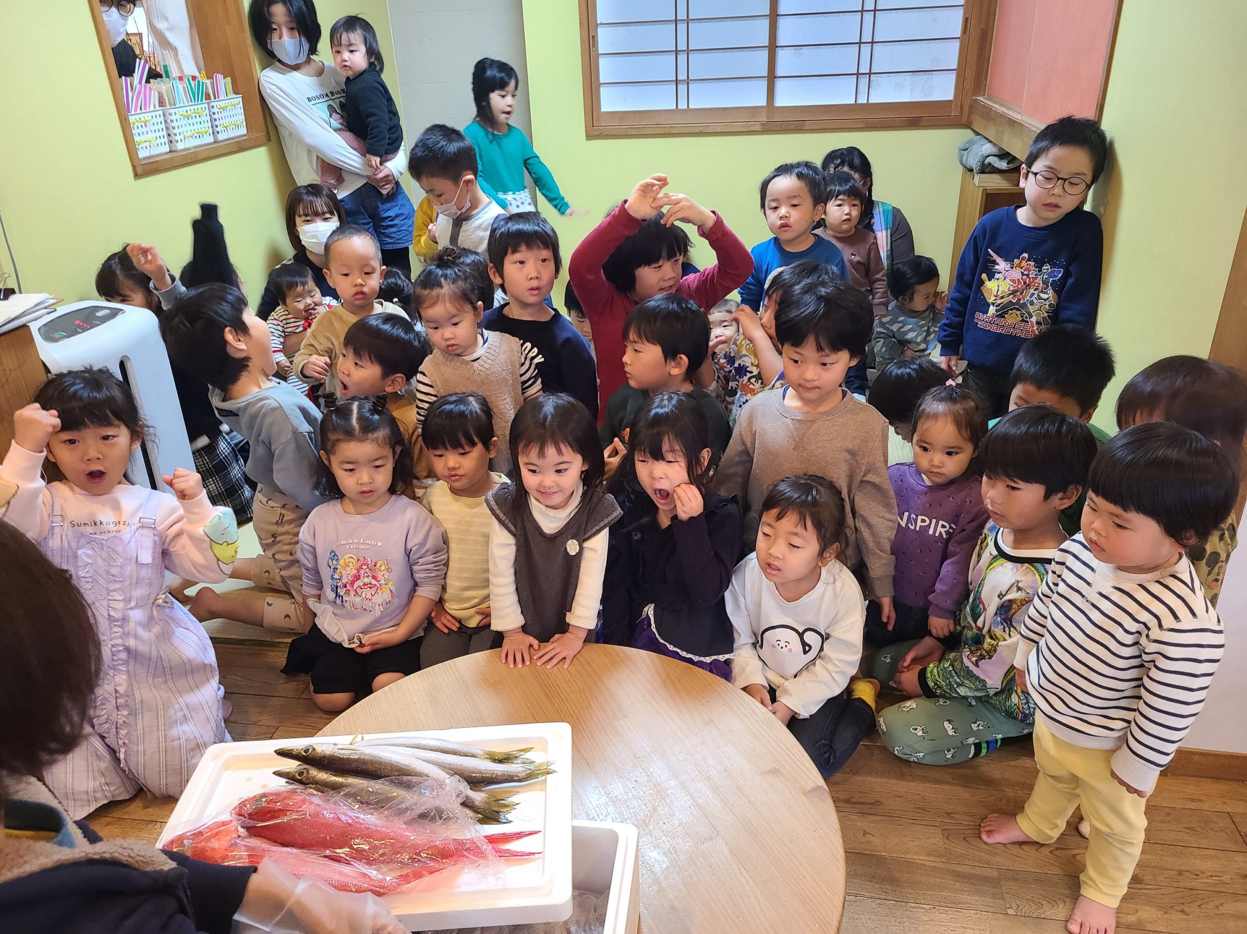 今日は今年最後のお魚の日☆これまで季節の旬のお魚や珍しい物を色々仕入れ、みんなで楽しく味わってきました😀