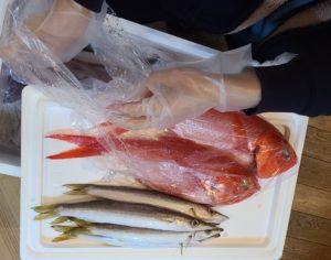 細長いお魚は…「さんまー!」と子ども達。正解は『カマス』でしたー🤓