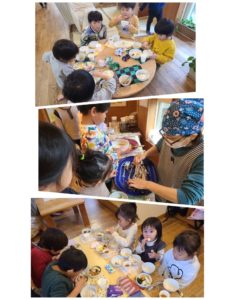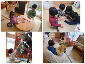 しかけ絵本を楽しんだりサンタさんパズルに挑戦したりして楽しんでいました♪昨日飾ったクリスマスツリー🎄も喜んで見ている子ども達です✨