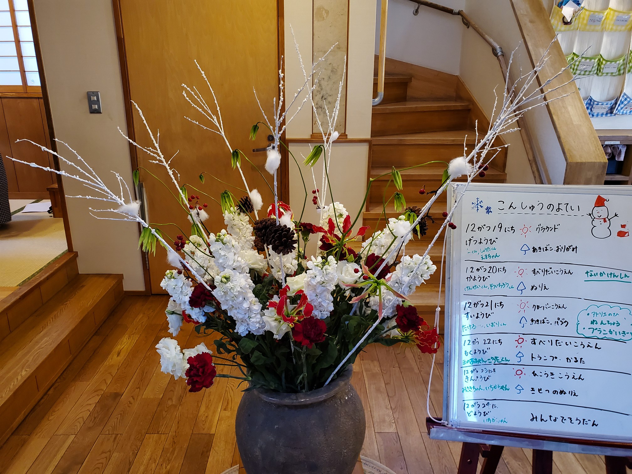 毎週火曜日お花屋さんからどんぐりの玄関にお花が届きます。