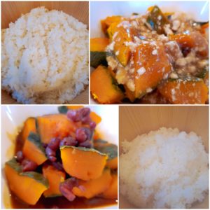 ☆南瓜のいとこ煮☆南瓜のそぼろあんかけ☆玄米入りご飯/白米