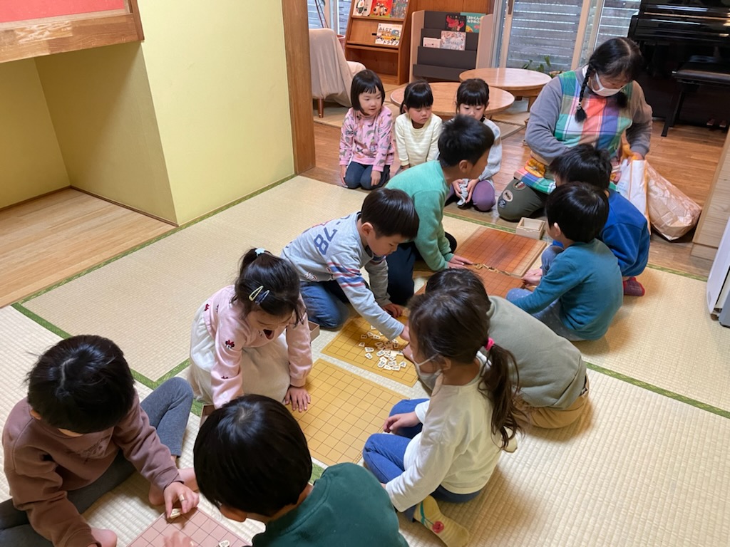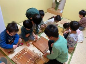 子どもたち同士教え合う様子が見られ活気のある雰囲気でした👍駒を取られないようにするには…少しアドバイスをすると次の一手をよーく考えて進める様子が見られ、いい勝負を繰り広げていましたよ🔥