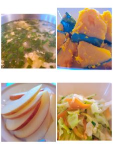 ☆ニラ玉スープ☆南瓜のソテー☆彩りナムル☆りんご