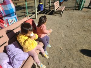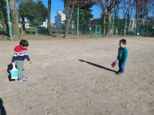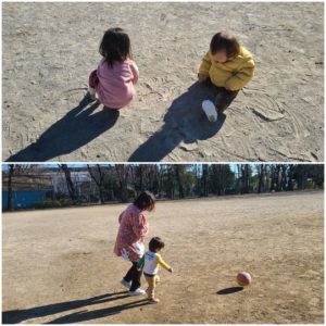 【明けましておめでとうございます~!!】みんなで元気に新年の挨拶をした後グラウンドに遊びに行きました。