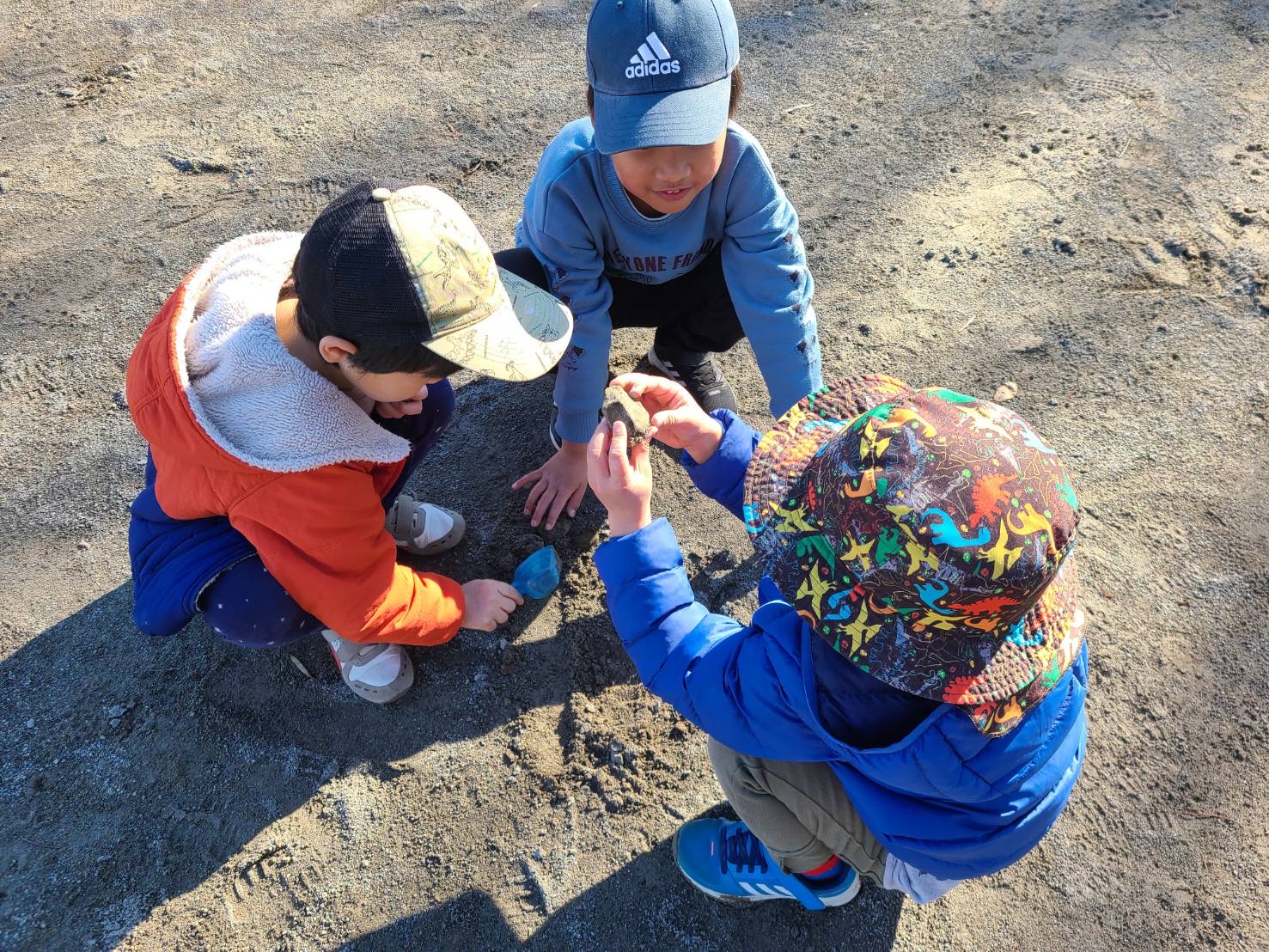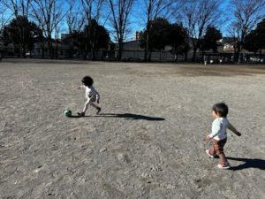 グラウンドでは羽根つきをしたり、ボールで遊んだり、泥んこ沼に入ってみたり、鬼ごっこしたり沢山遊びました♪