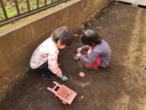 男の子達は・・・「土を運んでデコボコ穴を埋めるんだ!!」と頑張っていました😊
