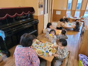 今日はみんなでランチを食べました♬お姉ちゃんとお兄ちゃん達が机を運んでくれたりと沢山お手伝いをしてくれました♪