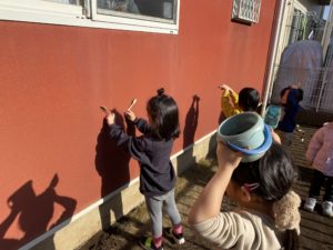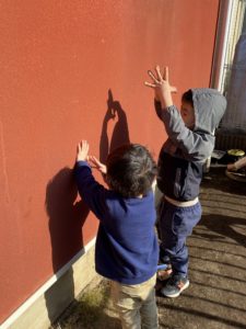 影が映る事に気付き手で「蝶々」や「鬼」の形を作り楽しんでいました♪