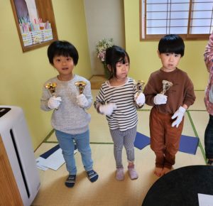 そして【聖者の行進チーム】と【きらきらぼしチーム】に分かれて演奏しました!!仲間の演奏を聞きながらきれいな音が出ると「いまのいいね~!!いい音だったよ~!!」と素直に褒め合いながらどんどんと上達していく子ども達です😊