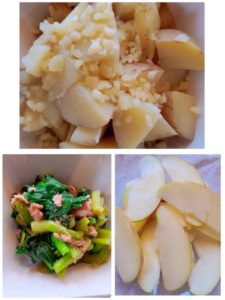 ☆じゃが芋チーズ☆小松菜ツナ和え☆りんご
