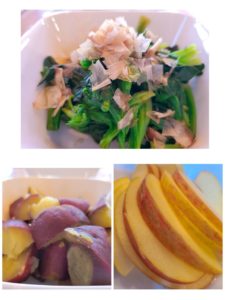 ☆ほうれん草のお浸し☆蒸かしさつま芋☆リンゴ