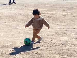 グラウンドに着くとボールを蹴って遊んだり