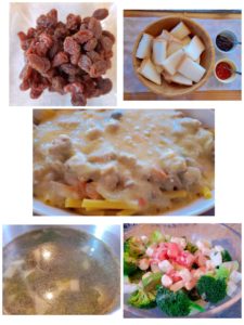 ☆チキンマカロニグラタン☆食パン(ジャム、チョコ)☆アボカドとトマトのサラダ☆大根とコーンのスープ☆レーズン