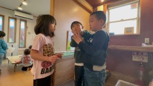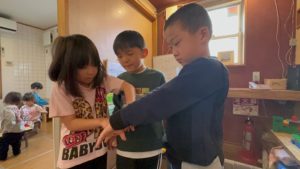 ↓三人で順番にあやとりを続けていく遊び方で、真剣な表情でやっていました♪