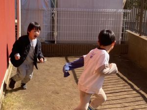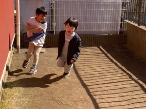 その後お庭に出て体を動かしたり、