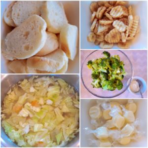 ☆春野菜スープ☆白パン☆ブロッコリー☆チーズ☆ブロッコリー☆バナナチップ