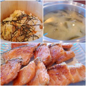 ☆筍ご飯☆えのきとわかめの味噌汁☆鮭の塩焼き