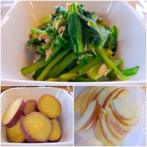 ☆小松菜とツナの和え物☆蒸かしさつま芋☆りんご