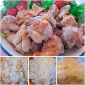 ☆鶏肉のガーリックソテー☆玄米入りご飯/白米☆白菜の味噌汁