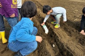 今日は大きい子たちとじゃが芋を植えました🥔
