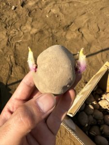 種芋に立派な”芽”が出ていて、驚いていたこどもたちです(笑)