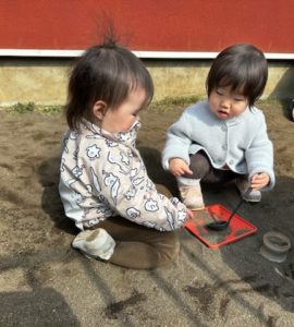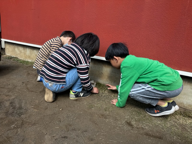 砂遊びをして遊んだり、「暖かくなってきたからいるかな~?」と虫探しをしたりしました。