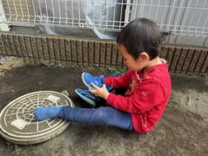 砂が入っちゃうほど沢山遊んだ後、靴を脱いで砂を出していました😊