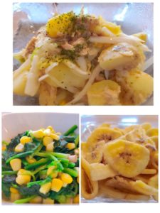 ☆春ツナサラダ☆ほうれん草とコーンのソテー☆バナナチップ