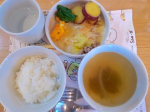 【完了期】☆白米☆舞茸とわかめのスープ☆ちゃんぽん春雨☆さつま芋の甘煮☆ほうれん草のお浸し☆清美オレンジ